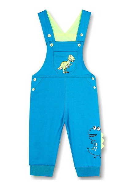 Bavlněné dětské lacláčky značky Kugo s moderním designem. Dětské lacláče mají na přední straně hlubokou kapsu a na nohavičkách mají pružný lem. Zapínají se na ramínkách a po stranách knoflíky. Složení: 80% bavlna, 15% polyester, 5% elastan.