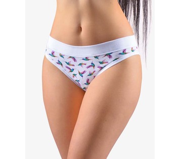 kalhotky klasické s úzkým bokem, úzký bok, šité, s potiskem značky GINA, kód 10273. Barva: bílá fialová, Velikost: 38/40, Složení: 92% Bavlna 8% ElastanKalhotky klasického střihu s úzkým bokem a širším pasovým lemem, dámské šité prádlo. Pasový kraj je začištěný širším lemem ze stejného materiálu. Nohavičky jsou začištěné úzkým lemem ze stejného materiálu. Přední díl je potištěný. Zadní díl a lemy jsou jednobarevné.Materiál je vyroben z bavlny, která je doplněna elastanem. Úplet je vhodný pro všechny, kteří hledají přírodní materiály. Elastan přidává materiálu pružnost a zlepšuje jeho tvarovou stálost. Prádlo z tohoto materiálu je vhodné pro každodenní nošení.Kolekce Disco XVII přináší svěží barvy do vašeho šatníku.. Kolekce: Disco XVII