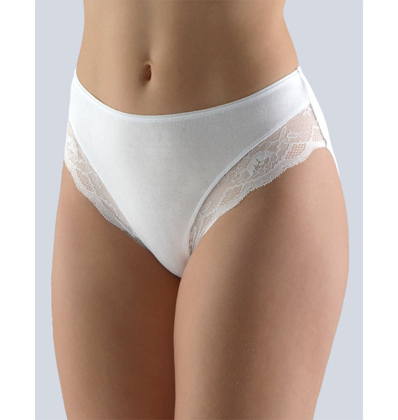 GINA dámské kalhotky klasické, širší bok, šité, s krajkou, jednobarevné Sensuality 10219P - bílá 50/52, Bílá