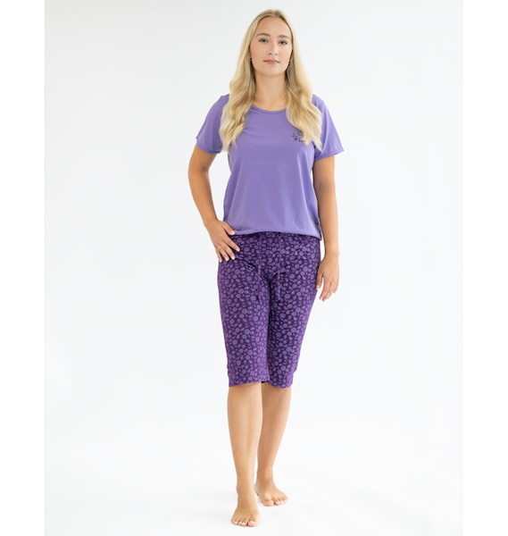 GINA dámské pyžamo ¾ dámské, 3/4 kalhoty, šité, s potiskem Pyžama 2024 19150P - hyacintová švestková S, hyacintová švestková