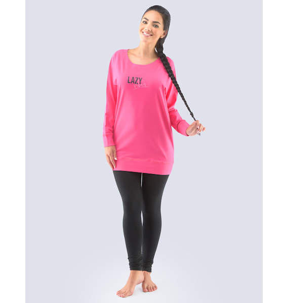 pyžamo dlouhé dámské, šité, s potiskem značky GINA, kód 19127. Barva: purpurová černá, Velikost: M, Složení: Triko 100% Bavlna, Kalhoty 92% Bavlna 8% ElastanTriko s dlouhým rukávem a dlouhé legíny, dámské šité pyžamo. Triko má rukávy a dolní kraj všité do manžet. Kalhoty jsou jednobarevné. Triko je jednobarevné s větším solitérem.Materiál je vyroben z bavlny, která je doplněna elastanem. Úplet je vhodný pro všechny, kteří hledají přírodní materiály. Elastan přidává materiálu pružnost a zlepšuje jeho tvarovou stálost. Prádlo z tohoto materiálu je vhodné pro každodenní nošení.. Kolekce: Pyžama 2021