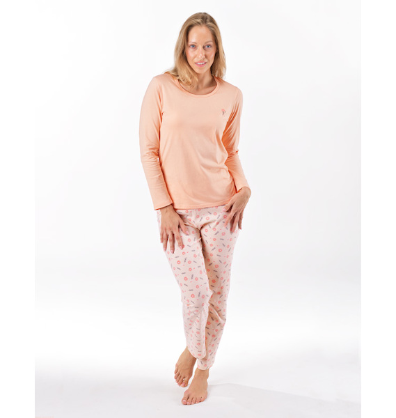 GINA dámské pyžamo dlouhé dámské, šité, s potiskem Pyžama 2025 19167P - lichi tělová M, lichi tělová