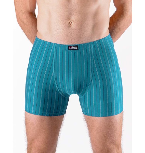 boxerky delší nohavička, šité značky GINA, kód 74167. Barva: petrolejová sv. tyrkysová, Velikost: 54/56, Složení: 92% bavlna, 8% elastanPánské boxerky s delší nohavičkou mají zadní díl členěn dvěma švy, jsou z bavlněného úpletu doplněném o elastanová vlákna. Tento materiál má vypletený pruhovaný vzor, je pružný a pohodlný pro každodenní nošení..