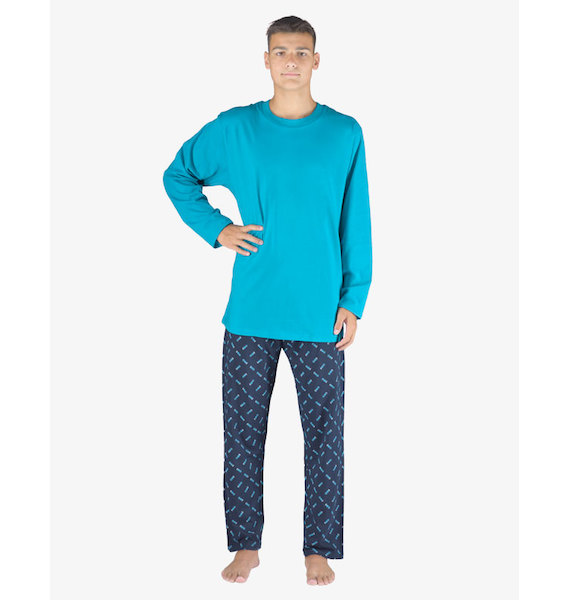 GINA pánské pyžamo dlouhé pánské, šité, s potiskem Pyžama 2023 79147P - tyrkysová lékořice M, tyrkysová lékořice