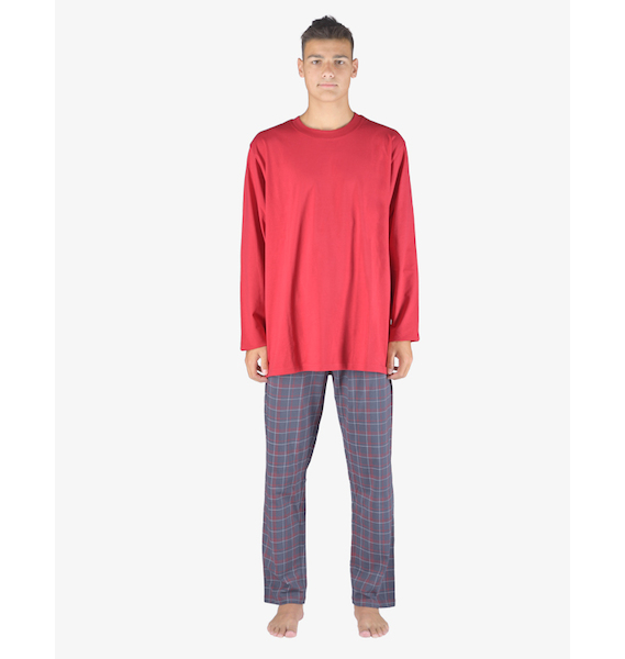 pyžamo dlouhé pánské, šité, s potiskem značky GINA, kód 79155. Barva: martini tm. šedá, Velikost: XL, Složení: 100% BavlnaPánské klasické pyžamo volného střihu z jemného úpletu Vám poskytne pohodlí během spánku. Kalhoty s oblíbeným vzorem káro doplňuje jednobarevné triko s dlouhými rukávy.. Kolekce: Pyžama 2023