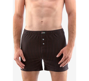 trenky volné, šité značky GINA, kód 75186. Barva: černá martini, Velikost: 50/52, Složení: 100% bavlnaVolné trenky ze 100% bavlny jsou ideální volbou pro každého, kdo má rád klasický pohodlný střih volných trenek a přírodní materiály. Tento kousek má vzor decentních proužků a v pase nášivku s logem Gino. Dobře padnoucí pasová guma a rozparek na dva knoflíky jsou samozřejmostí..